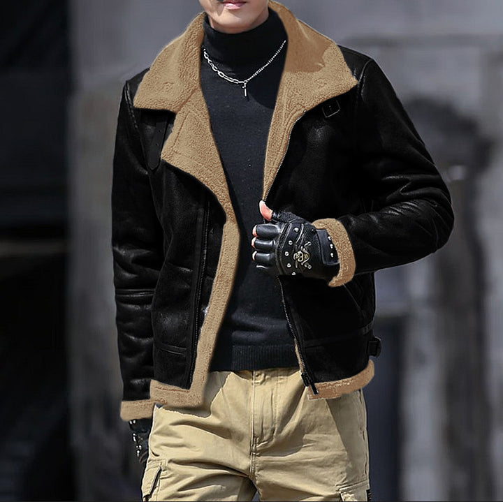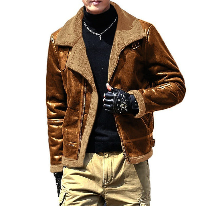 Fur One Lamb Wool Men's Coat Thickened Fleece-lined Suede Fabric Jacket
