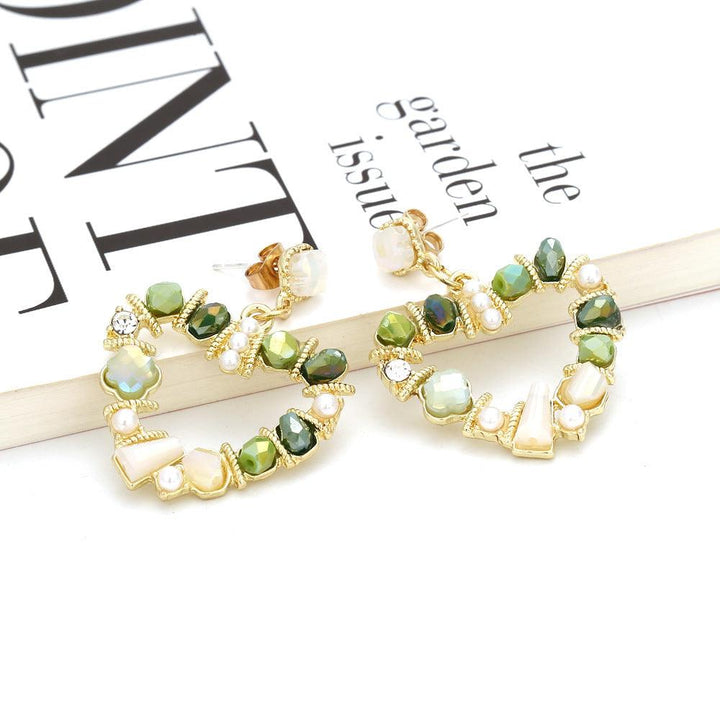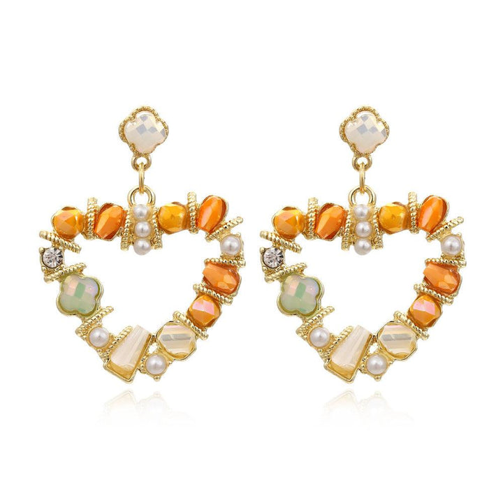 Crystal Earrings Heart Shaped Pearl Earrings S925 Silver Needle Earrings