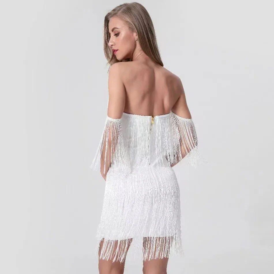 Embrace your inner celebrity with our latest addition, the Elegant Tassel Bandage Bodycon Mini Dress. Designed for the modern woman who loves to stand out, this dress is a blend of sophistication and bold style, perfect for various glamorous occasions. Whether you're attending an evening party, a nightclub event, or walking the runway, this dress guarantees a stunning appearance.