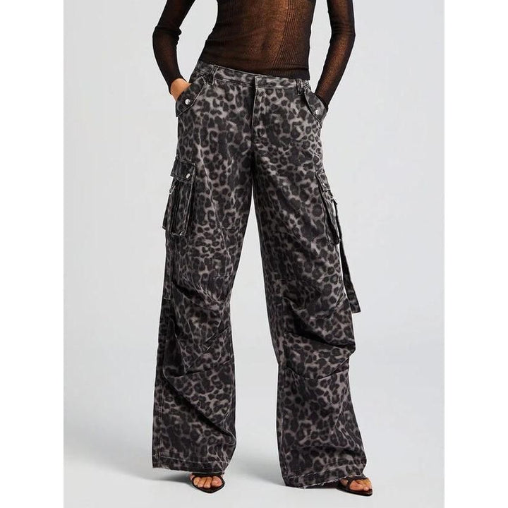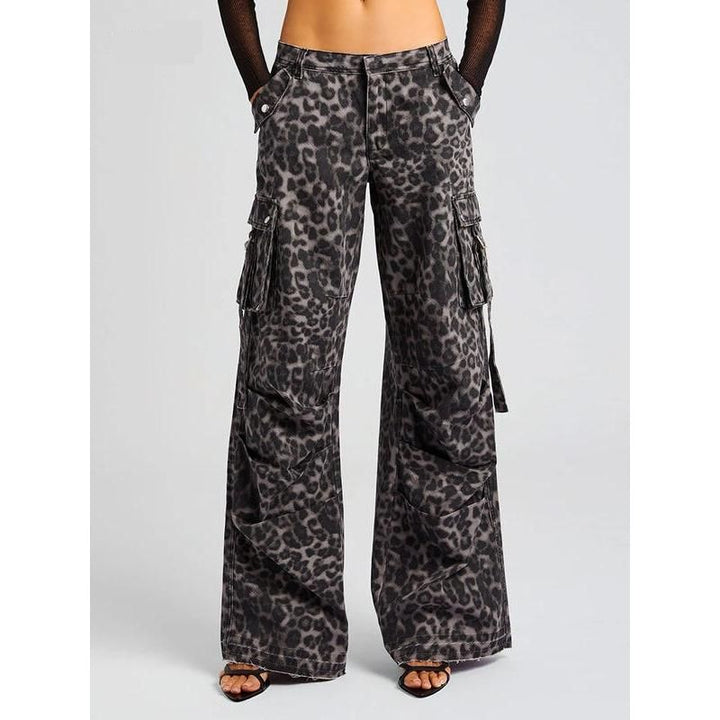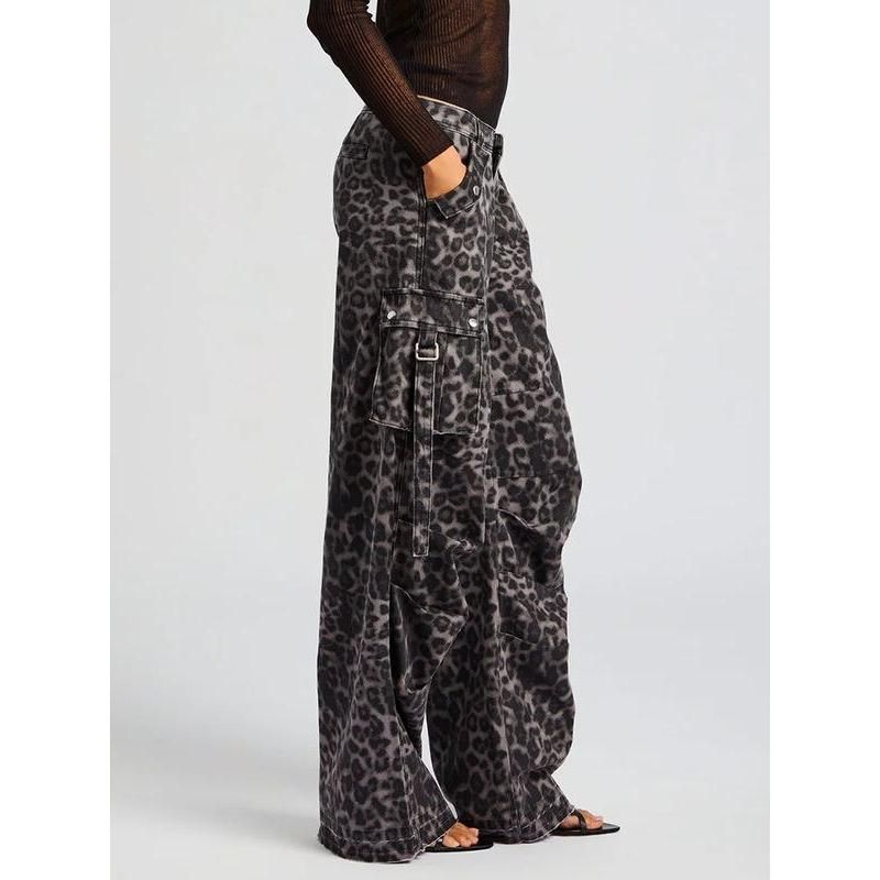 The trousers boast an array of features that make them stand out. The high waist design ensures a flattering fit, accentuating your silhouette. The leopard print adds a touch of wild sophistication, making a statement wherever you go. Crafted from a blend of cotton and polyester, these pants offer both durability and comfort. The pockets aren't just practical; they add an element of chic functionality to the design. And with the button fly closure, you're assured a secure and stylish fit every time.