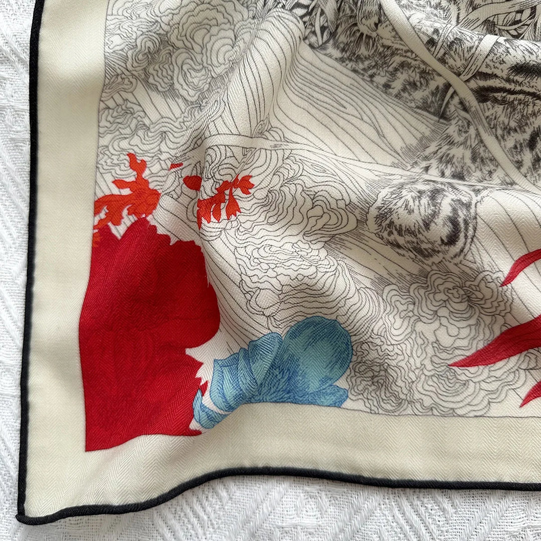 Luxury Silk Wool Pashmina Scarf - Elegant Natural Print