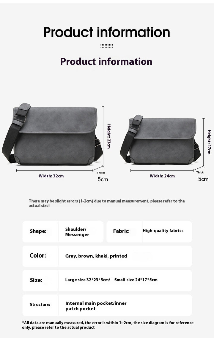 Men's Contrast Color Matte Fashion Retro Crossbody Shoulder Bag
