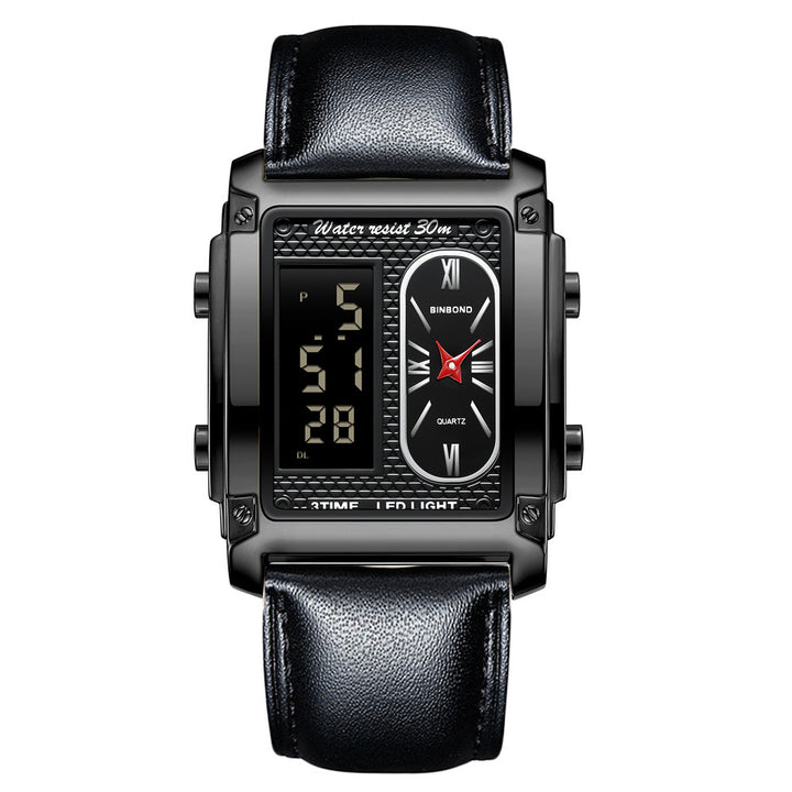 Men's Creative Steel Belt Electronic Watch Double Inserts Multi-functional Waterproof For Male Students