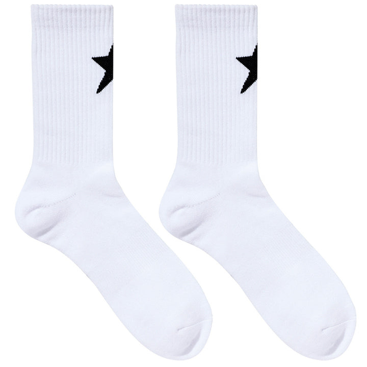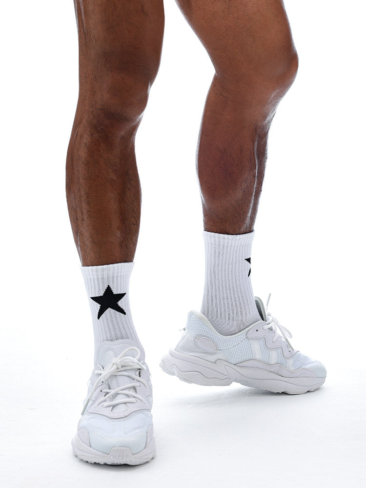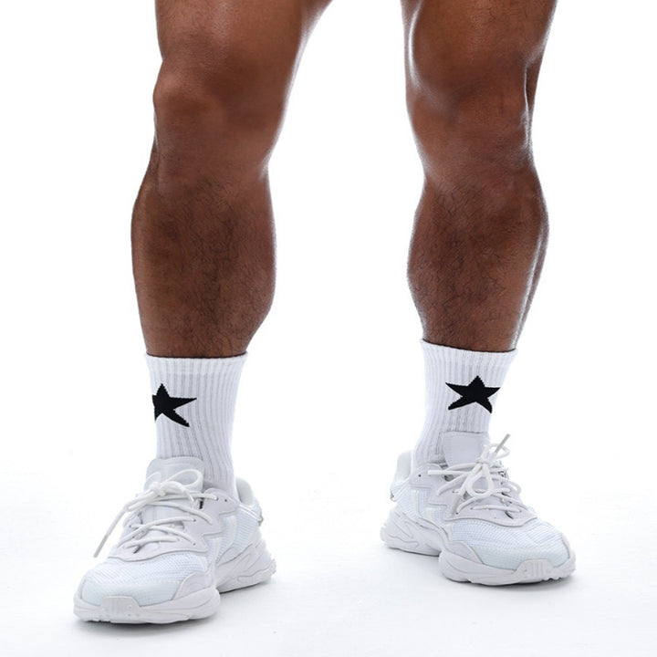 Men's High White Five-pointed Star Pattern Sports Workout Socks