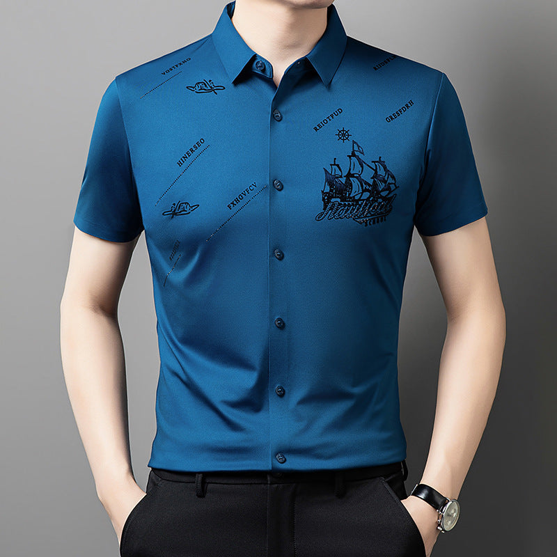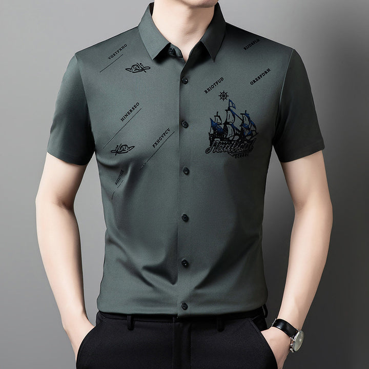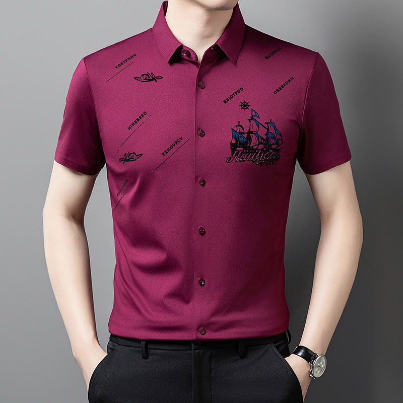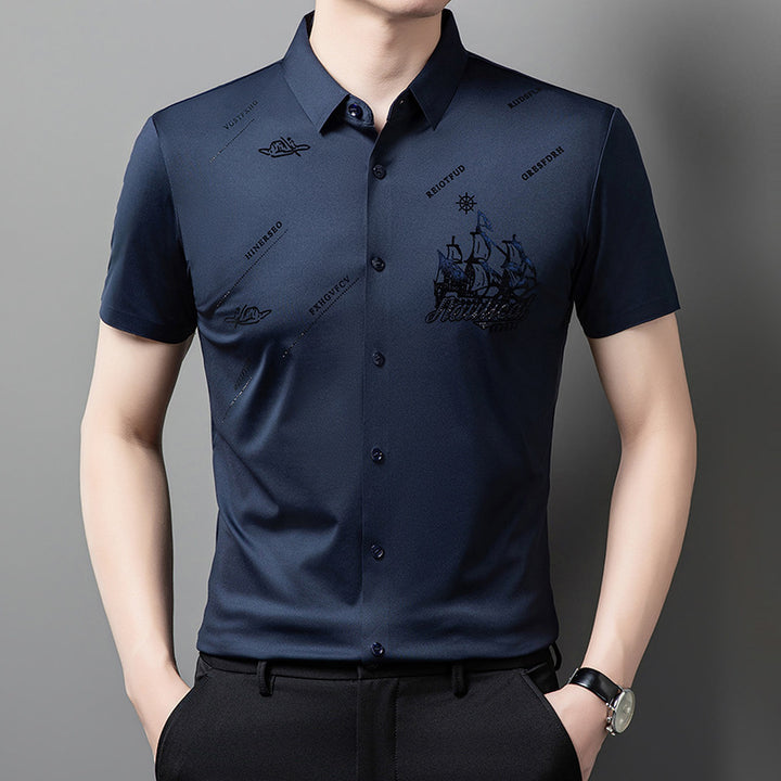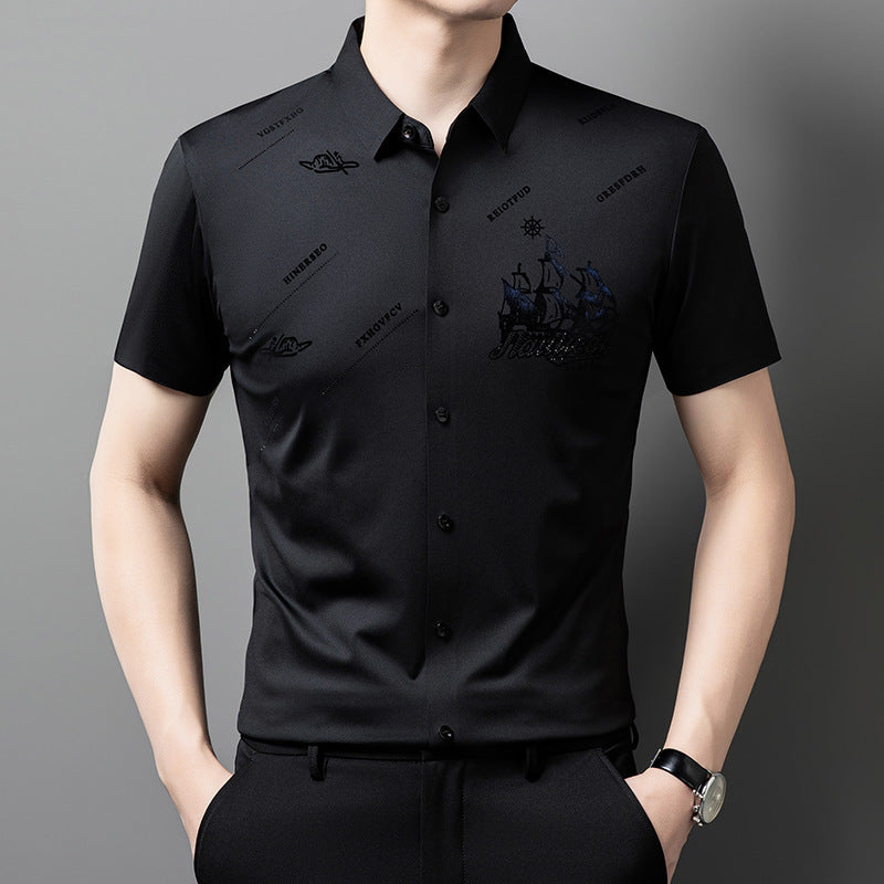 Men's Rhinestone Printed Short-sleeved Shirt