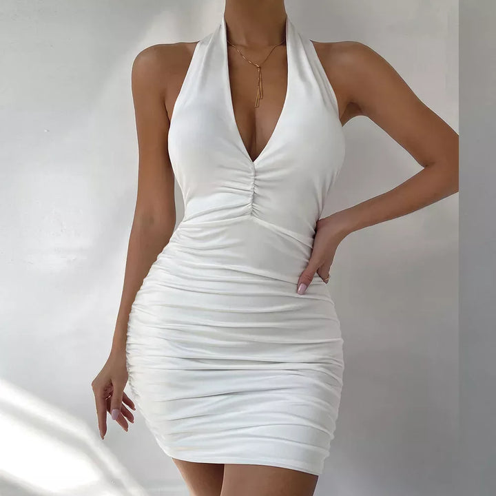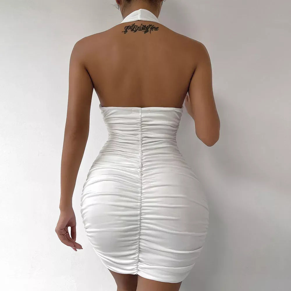 Step into a world of sophisticated allure with our Summer Sexy Halter Ruffle Mini Dress. Perfectly blending elegance with a hint of playfulness, this dress is your ultimate companion for evening parties and club nights. Embrace your inner glamour as you make a statement in this stunning attire.