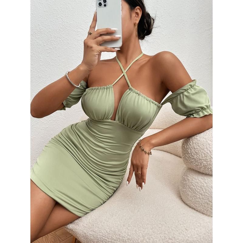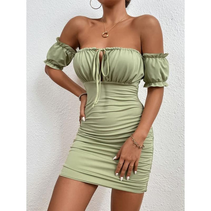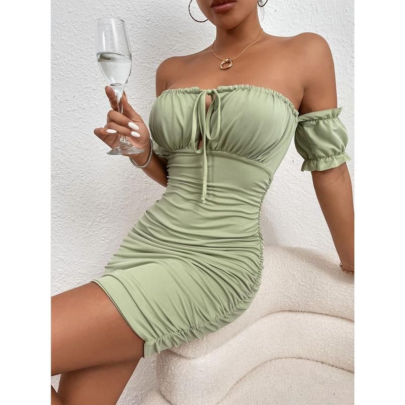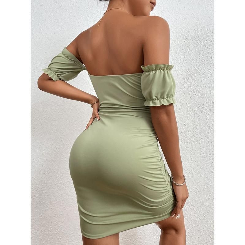 Elevate your style and embrace the allure of the night with our Sexy Off Shoulder Ruffle Mini Dress. This Summer Club Bodycon Dress is designed to make you the star of the evening, blending sophistication with a touch of playful charm. Get ready to turn heads and make a statement at every summer soiree.
