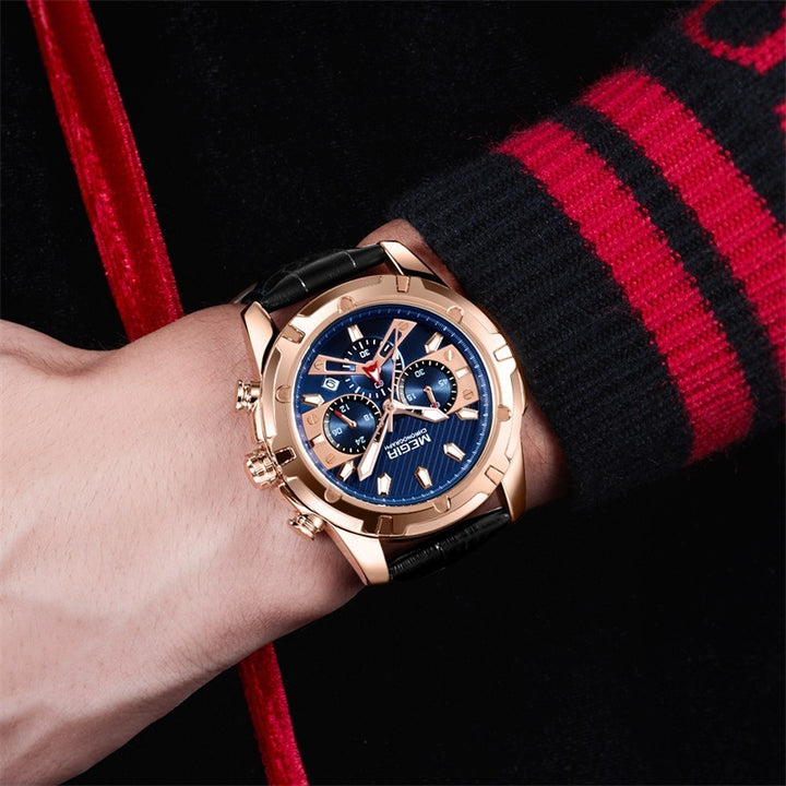 Waterproof Multifunctional Chronograph Luminous Leather Sports Quartz Watch