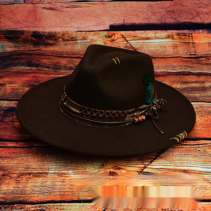 Western Original Design Manual Sewing Needle Woolen Felt Hat High-end And Fashionable Feather Model Fedora Hat