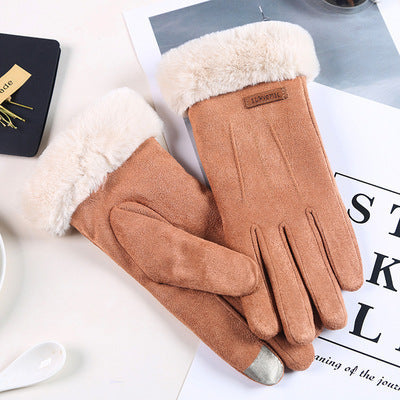 Women's Black Fur Winter Driving Gloves Windproof And Warm Touch Screen
